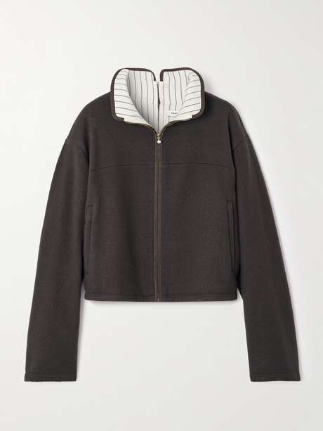 At first glance, Carven's jacket looks quite classic, but a closer look shows it's far more special. Taking cues from athleisure, it's made from wool-felt for a boxy profile and has an zip at the nape for that back-to-front effect. It also has a striped lining and is tipped with a faux pearl on the primary zip.