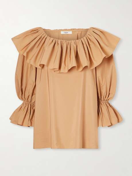 CHLOÉ Ruffled cotton-poplin top