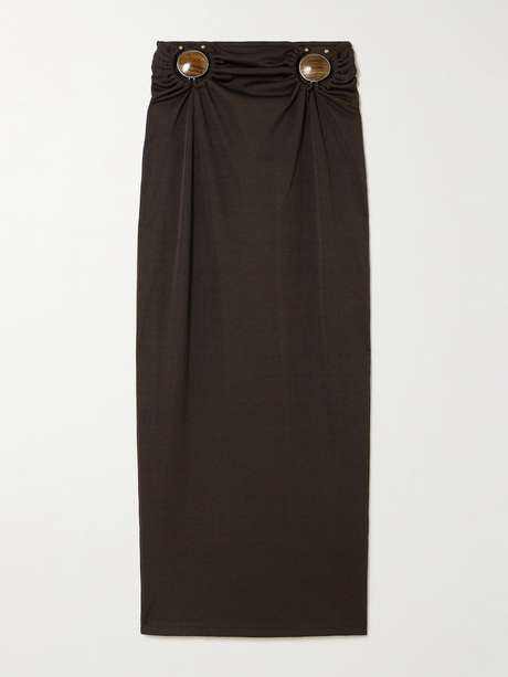 The waist of Christopher Esber's 'Mineral Stone' midi skirt is framed with two O-ring cutouts inlaid with vivid tiger's eye. It's made from smooth stretch-jersey and has an effortless column shape. Wear yours with a cropped top to showcase the details.