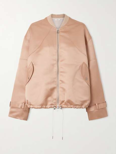 CO's sleek bomber jacket has exaggerated sleeves with adjustable tabs at the cuffs, so you can adjust the shape. It's made from lustrous duchesse-satin and has a gathered, elasticated hem.
