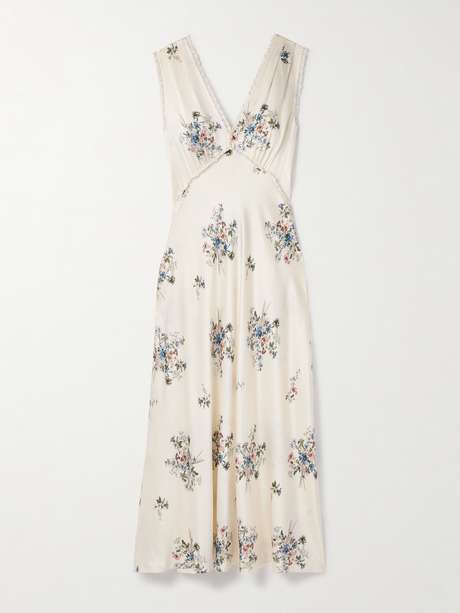 DÔEN Tahlia lace-trimmed floral-print silk-charmeuse midi dress