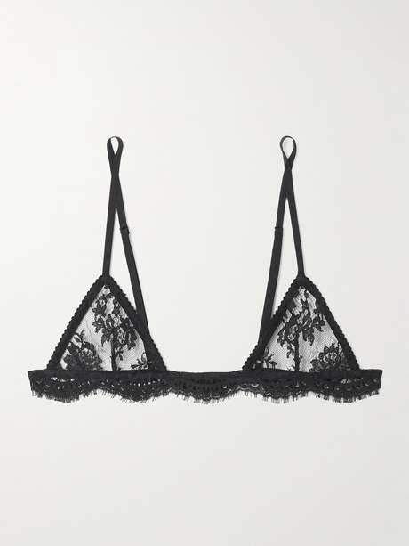 Dolce&Gabbana's bra was part of the Fall Milan '25 runway, which featured romantic lingerie accents. Designed with soft cups, this micro triangle style is made from cotton-blend lace and has a scalloped underband with eyelash trims. The fully adjustable straps ensure a custom fit.