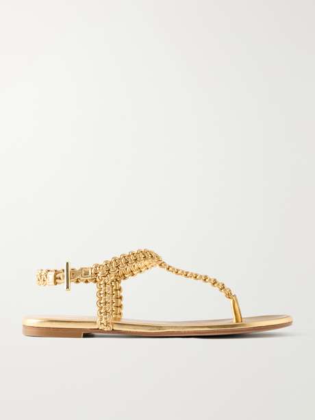 GIANVITO ROSSI Woven metallic leather thong sandals