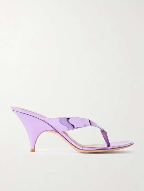 Gianvito Rossi's thong sandals reimagine a classic warm-weather style with refined ease. They've been crafted in Italy from purple mirrored-leather and set on the label's signature 70mm curved heel.