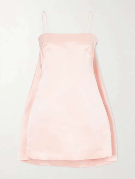 Givenchy’s mini dress blends structured elegance with understated luxury and modern polish. Crafted from silk-satin, it features a fitted silhouette with a straight neckline and slim straps, while a layered, cape-like detail at the back adds volume and dynamic movement.