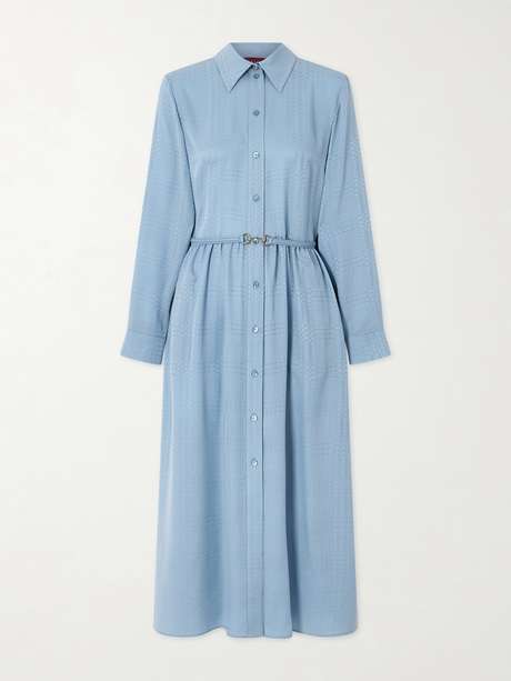 Gucci's shirt dress takes inspiration from vintage silhouettes, re-imagined with the symbolic emblem. It's been cut in Italy from smooth silk-satin jacquard, with lustrous buttons and a slender Horsebit belt to finish.