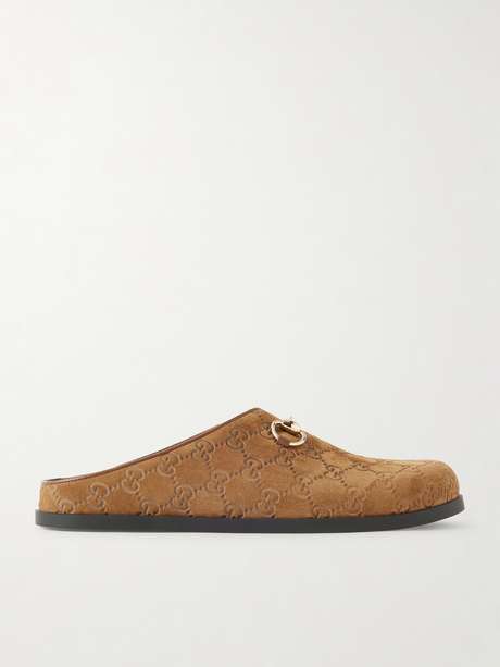 GUCCI Horsebit-embellished logo-debossed suede mules