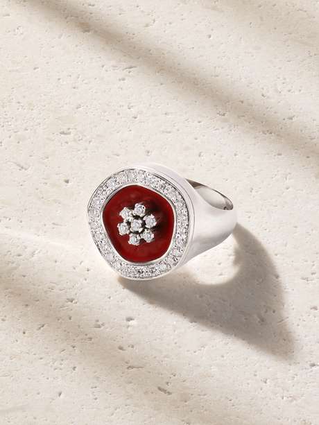 ILARIA ICARDI Flower 18-karat white gold, diamond and enamel signet ring