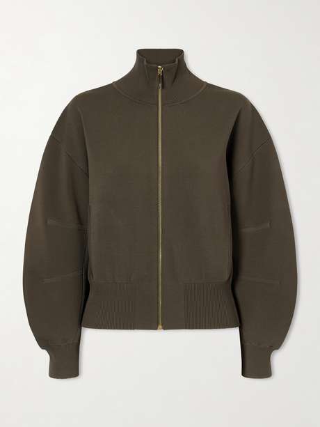 Joseph’s 'Sable' bomber jacket adds a distinctive silhouette to your wardrobe. Made from Milano knit, it features balloon sleeves and a zipped mock neck. Layer it over a white tank for an understated look.