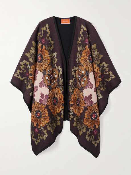 La DoubleJ's cape is printed with colorful florals inspired by traditional Italian mosaics. Made from wool, it has an enveloping shape and billowy waterfall-effect sleeves.
