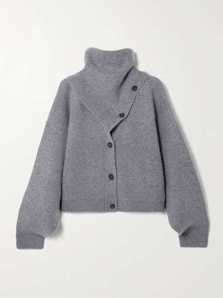 The perfect two in one, Le Kasha's 'Derios' cardigan has an asymmetric turtleneck which innovatively converts to a detachable scarf. It's knitted from beautifully soft ribbed cashmere with dropped shoulders that emphasize the relaxed fit.