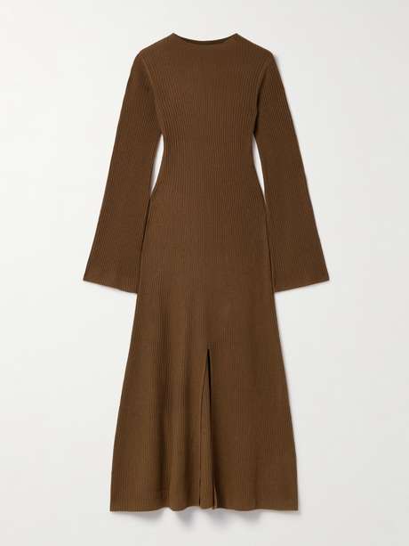 Le Kasha's midi dress is a lightweight layer that's perfect for transitional weather. Ribbed for structure, it's knitted from cashmere, a natural fiber prized for softness and natural heat retention. Wear yours with tights and knee boots.