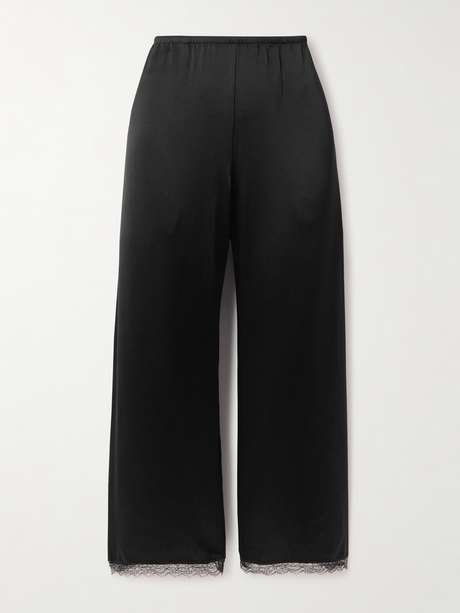 LESET's black 'Barb' pants are designed with both comfort and style in mind. Cut from soft, fluid satin, this low-rise pair has relaxed, wide legs with lace-trimmed cuffs. They're an effortless match to the coordinating blouse.
