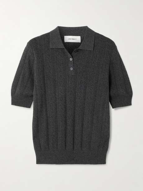 LISA YANG Cristine pointelle-knit cotton and cashmere-blend polo shirt