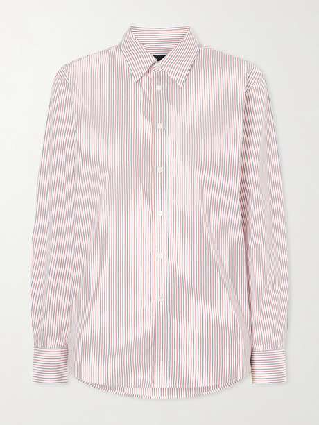 Nili Lotan's 'Raphael' striped shirt is cut from Italian cotton in a regular silhouette with a crisp pointed collar and curved hem. Blue and red stripes lend a subtle vintage feel. Wear it with tailored pants or denim.