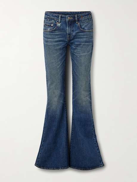R13's 'Overflow Boy' jeans are named for their flared legs that pool dramatically at the cuffs. They sit low on the waist and are intentionally faded and whiskered to look like a pair from the '90s.