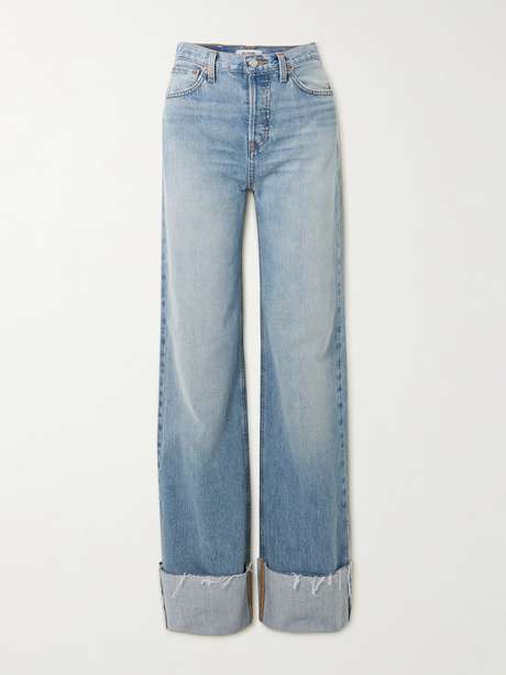 With a mission to "restore individuality to the denim space", RE/DONE's collections reimagine iconic heritage styles. These jeans are cut for a high-rise and have wide legs with frayed turn-up cuffs to add a laid-back feel.