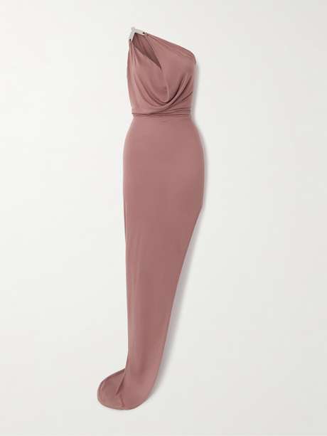 The one-shoulder neckline on Rick Owens' 'Hydra Aliyah' gown is held together by the label's signature 'Hydra Prong' hardware – match your jewelry to the gleaming silver-tone metal. Made from jersey, it has a softly draped bodice and skims your figure all the way to the asymmetric hem.