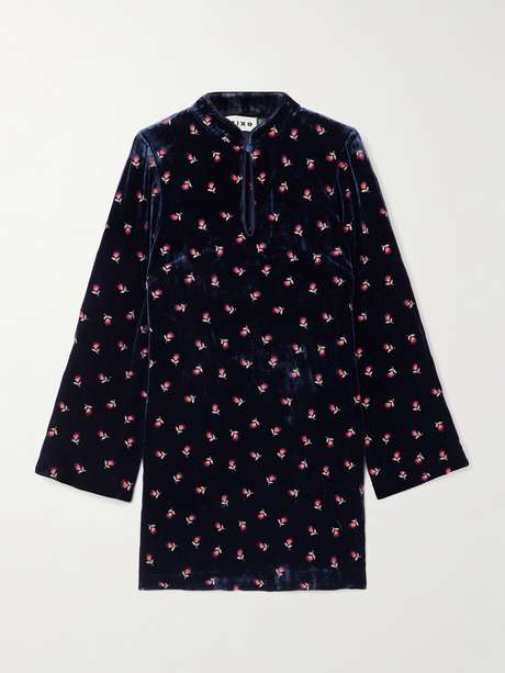 Embroidered with ditzy florals, RIXO's 'Calla' dress embodies a bohemian '70s charm. It's cut from soft velvet with a smart collar and bell sleeves. The keyhole cutout will perfectly showcase a pendant.