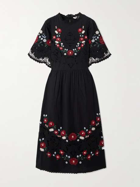 From the colorful embroidered flowers to the airy broderie anglaise, Sea's 'Rosalie' dress encapsulates the label's folkish romance. It's made from a lightweight cotton and linen-blend and has a floaty shape emphasized by gently puffed sleeves. Style yours with knee boots or flats.
