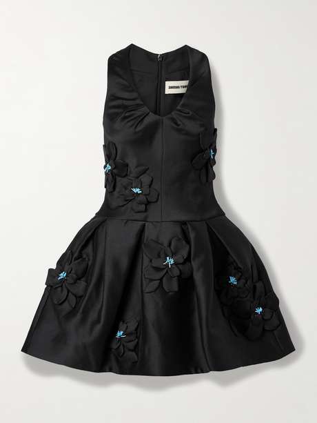 SHUSHU/TONG's dress is made from duchesse-satin and appliquéd with bead-detailed flowers. It's lightly gathered along the V-neck and has a nipped-in waist and voluminous mini skirt.