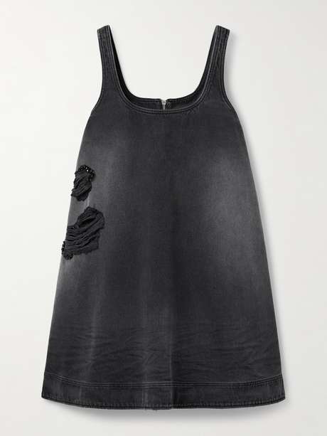 Simone Rocha’s collections toe the line between rebellion and romance, and the result is always so compelling. This mini dress is made from denim that’s faded and distressed - look closely and you’ll notice shimmering black crystals tracing the rips. Accessorize with chunky loafers or sneakers.