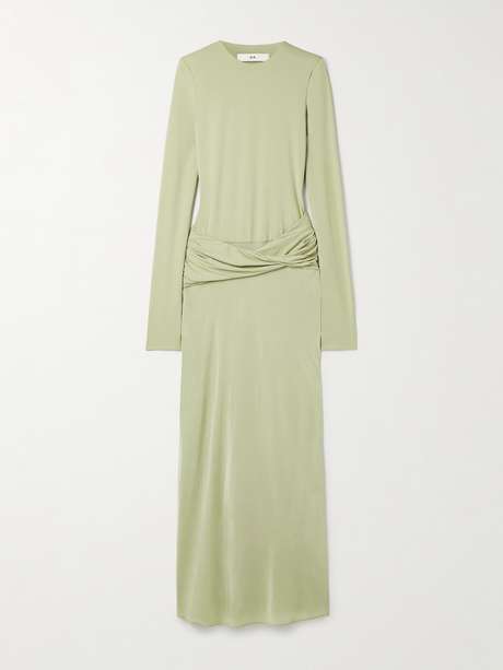 SIR's elegant 'Milesi' gown is designed to look like perfectly curated separates. The stretch-jersey bodice features a twisted panel for a sculptural, draped effect, while the satin skirt gently skims your legs and is complete with a side split.