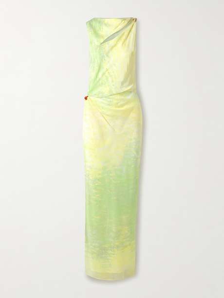 SIR's 'Citterio' dress is made from fluid, printed crepe de chine that's designed exclusively for the brand. It has bead embellishments framing slim cutouts at the waist and chest. Style yours with pumps and a clutch.