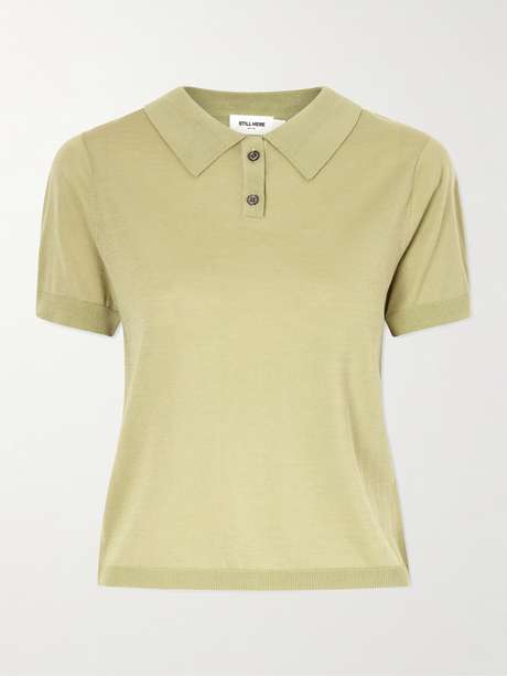 Still Here's 'Daughter' polo shirt is spun with cotton and silk yarns in a soft green hue. Knitted for a close fit, it's topped with a neat collar and buttoned placket.