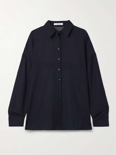 Tibi's shirt is modeled on classic menswear styles. It's cut from lightweight wool-blend gauze in a loose shape that's enhanced by dropped shoulder seams. Wear it partially tucked into sleek tailoring.