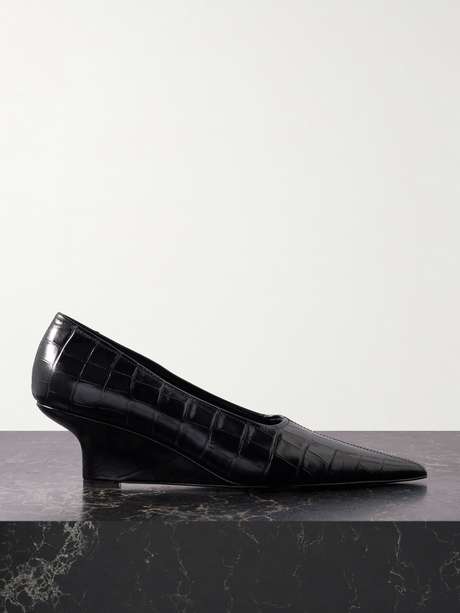 TOTEME's pumps will make every outfit look so much more sophisticated. They're made from glossy croc-effect leather with sharp pointed toes and 55mm wedge heels.