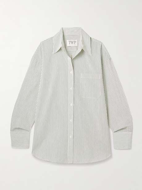Often taking cues from menswear, TWP's design ethos is "ease, comfort and sophistication". This signature 'Big Joe' shirt is cut for an oversized fit from a striped cotton-blend and has a single chest pocket. Team it with tailoring, or jeans if you're going for a more relaxed take.