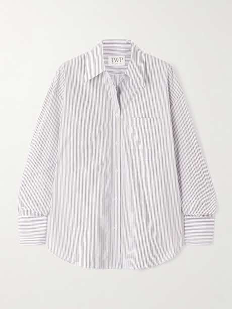 Timeless and endlessly versatile, TWP's 'Big Joe' shirt takes cues from classic menswear styles. It's made from stirped cotton-poplin with dropped shoulders and has a neat collar and lustrous buttons. Roll the cuffs for a more laid-back take.