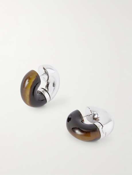 Uncommon Matters' 'Stratus' earrings are a contemporary twist on classic hoops. They have a chunky shape made from contrasting silver and rich tiger's eye.