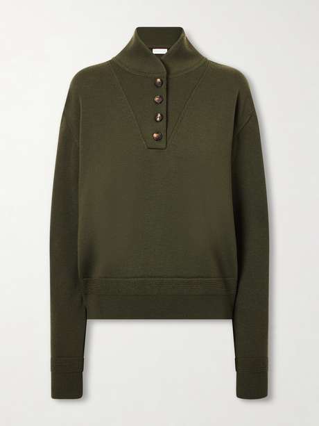 Veronica de Piante's clothing is made in family-run factories in Italy using quality materials to ensure they'll stand the test of time. This 'Alicia' sweater is knitted from wool with a buttoned neckline inspired by vintage military uniforms.