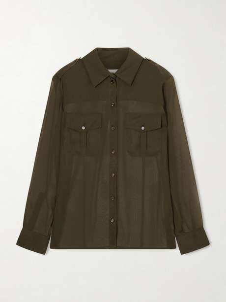 Veronica de Piante's 'Daphne' shirt taps into this season's love of all things sheer. It's cut from silk-chiffon that's super lightweight and comes in a rich deep-green color.