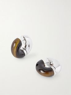 UNCOMMON MATTERSStratus silver tiger's eye hoop earrings