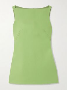 After-dark invitations provide the perfect opportunity to embrace the rainbow more freely than you might in your everyday wardrobe, where functionality and versatility tend to be front of mind. Rather than reaching for your favorite LBD for your next cocktail event, opt instead for a short, structured mini in a zingy hue – like Emilia Wickstead’s ‘Rifer’ wool-crepe mini dress. Switch out black accessories for those in the same color family: Gucci’s ‘Selen’ horsebit mules in dark green and Toteme’s ‘Bevel’ satin tote in pastel yellow will keep the look nuanced. Instead of diamonds or pearls, opt for the warmth of deep brown resin jewelry – Dinosaur Designs’ rounded resin ring delivers a fresh take on cocktail bling.