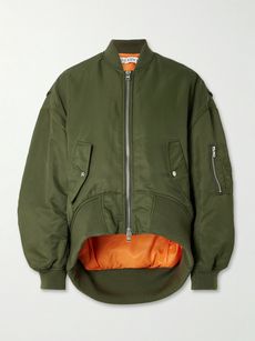 This season’s bomber jackets subvert the norm by playing with proportion and detailing that bring an entirely new dimension to this sporty staple. Japanese brand Sacai fuses timeless style with streetwear cool, and its oversized bomber comes with contrast edging and a statement pleat up the back that not only loosens up the silhouette, but gives it an urban, architectural mood, too. With chunky-zip details, it’s perfect paired with stompy boots and tartan skirts, as well as with relaxed-cut stonewashed jeans. Agolde’s collaboration with Shoreditch Ski Club offers a cropped, cinched style with voluminous sleeves – it feels fresh in a pale gold-green hue. Looking for a more classic silhouette? Anine Bing’s is a timeless choice rendered anew in deep burgundy, with subtle ruching up the sleeves.