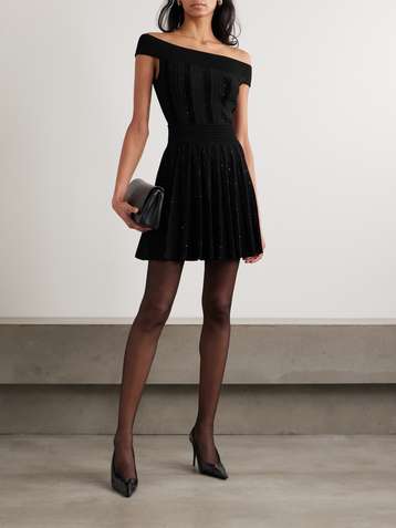 Pleated sequin-embellished velvet and ribbed-knit mini skirt