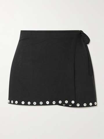 Zandra button-detailed linen-blend mini wrap skirt
