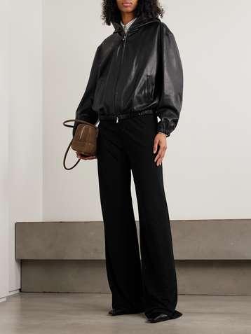 Leo hooded paneled leather jacket