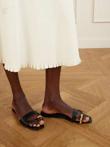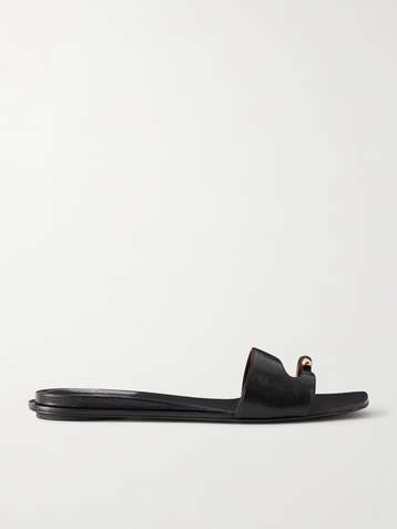 Pierced embellished leather slides