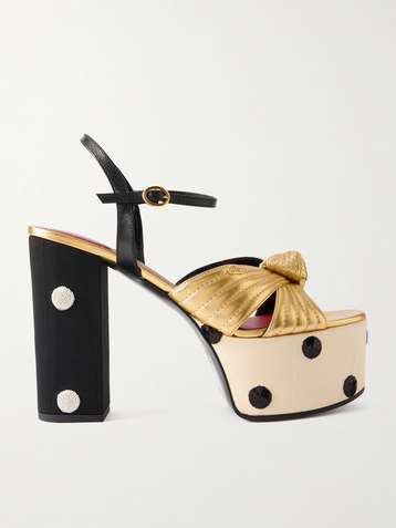 Crasher 125 knot-detailed sequined moiré and leather platform sandals