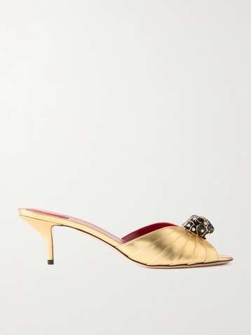 Mystery 85 crystal-embellished leather-trimmed chiffon mules
