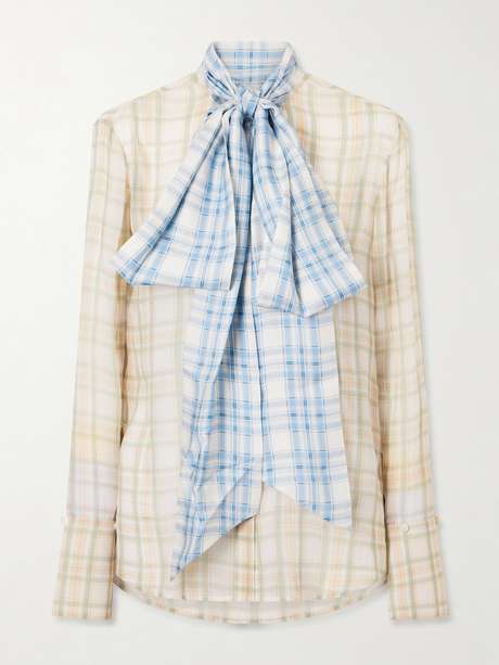 Acne Studios’ 'Serena' blouse blends rustic influences with refined ready-to-wear. Made from silk chiffon, it has a pussy-bow defining the high neckline and features two contrasting plaid patterns. Style yours with neutral-toned pants or skirts.