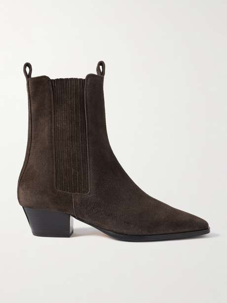 The 45mm Cuban heels give a Western slant to Aeyde's 'Agata' ankle boots. Crafted in Italy from suede, they have pointed toes and elasticated side panels that ensure they slip on easily. A signature red stitch details the back of each shoe.