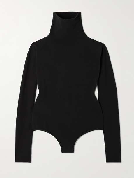 Azzedine Alaïa was known as the 'king of cling' for his figure-skimming silhouettes - this bodysuit honors that tradition. It's cut from soft stretch-jersey for a close fit with a chic turtleneck and low-coverage base.