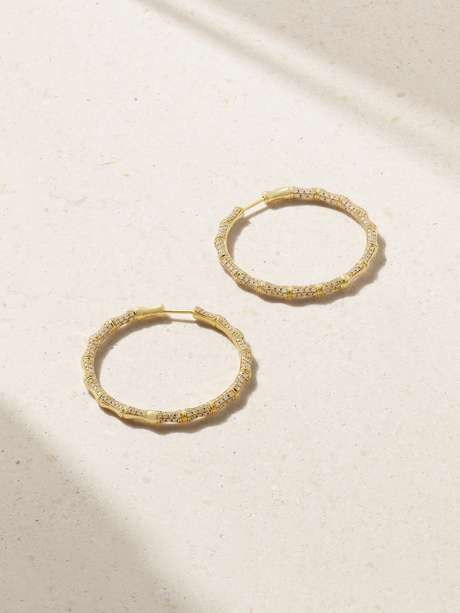 Anita Ko's timeless, diamond-encrusted earrings are the kind you can wear every day. They're crafted from 18-karat gold and intricately etched to mimic the shape of bamboo. Wear yours solo or stacked alongside your favorite huggies.