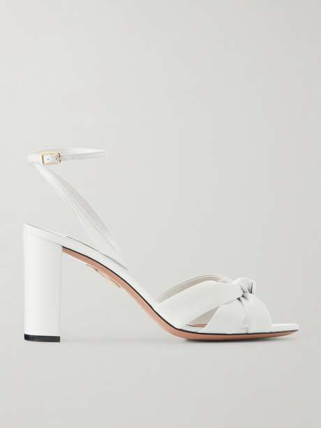 True to Aquazzura's uncompromising standards, these 'Nina' sandals have been crafted in Italy from leather. They rest on 85mm block heels and bear the brand's unmistakable gold pineapple moniker on the underside. You'll want to choose hemlines that keep the knotted toe cage in focus.